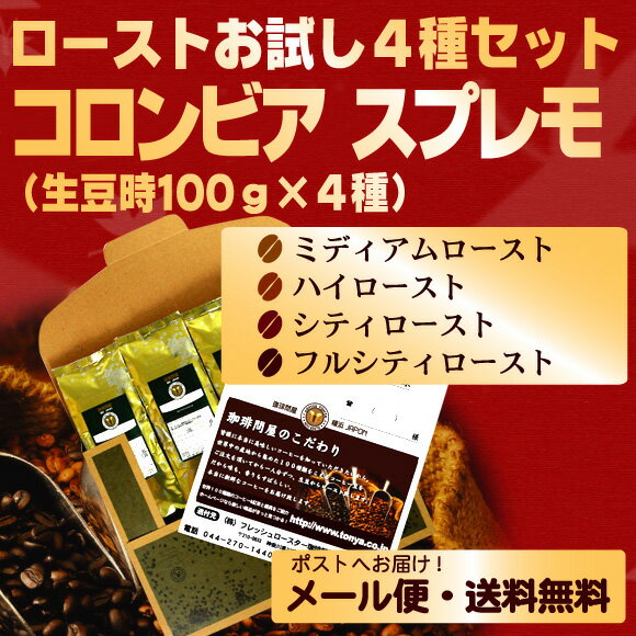 コロンビアローストお試し4種メール便(コーヒー豆説明書つき) 価格: 1,900円 レビュー評価:4.5 レビュー数:4 メール便配送なら送料無料(※本商品のみ注文した場合に限ります)※代引きの場合送料無料になりません。宅配便となるため代引手数料+送料(別途945円)ポストにコーヒーをお届けする。それがコーヒーメール便です。今月のおすすめコーヒーを4つの焙煎度合いに焼き上げました。同じ豆でありながら、焙煎の違いによる味と香りの変化を楽しめます。それぞれ個性的な4種類に焙煎したコーヒーを各生豆時100gづつA4ファイルケースに詰めてお届けします。挽き方は、豆または粉からお選び下さい。袋は香り長持ちの特殊バルブ加工です。【ローストお試し4種セット内容】◎コロンビアスプレモ(生豆時100g・ミディアムロースト)◎コロン Supported by 楽天ウェブサービス |